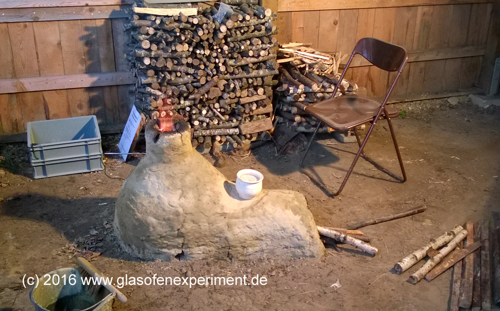 kleinen Glashütte nach römischem Vorbild, Archäologischer Park Cambodunum (APC, Kempten im Allgäu; in Zusammenarbeit mit dem Lehrstuhl für Provinzialrömische Archäologie der Ludwig-Maximilians-Universität München) |